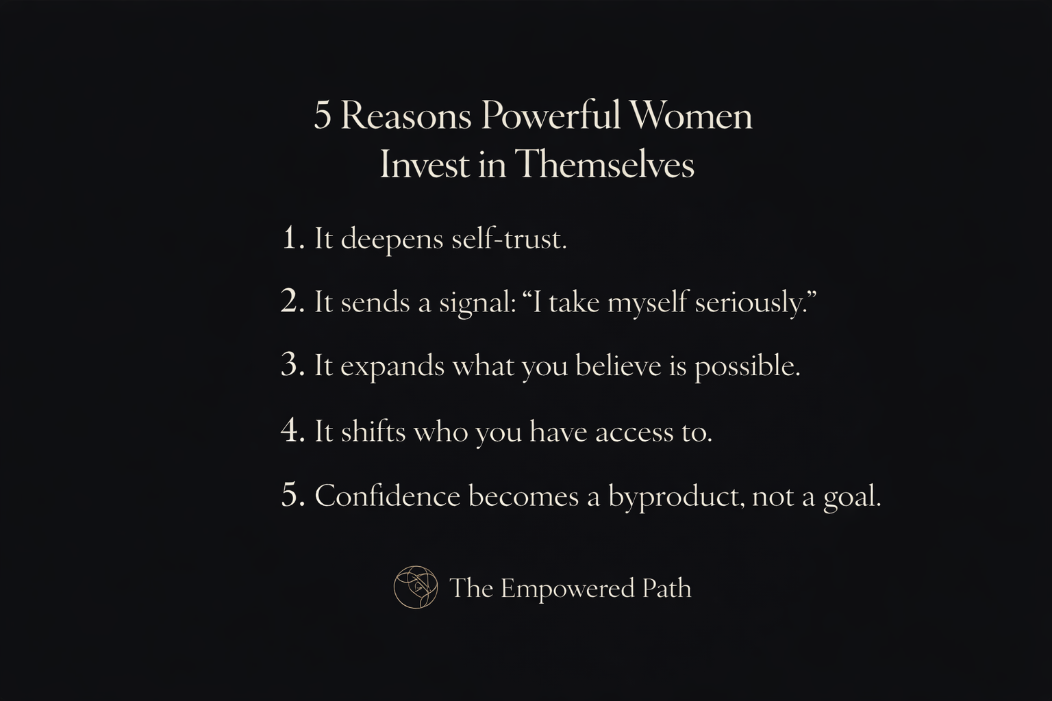 The Empowered Path is a five-week premium mentorship container designed to support deep identity shifts, nervous system regulation around visibility and money, and the foundations of an aligned, sustainable business.